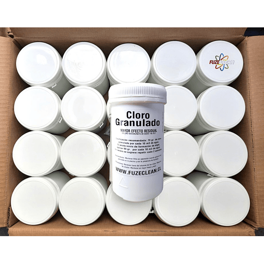 El Cloro Granulado FuzeClean es un desinfectante de acción rápida, ideal para mantener el agua de tu piscina limpia, segura y cristalina. Gracias a su alta concentración de ácido tricloroisocianúrico al 90%, elimina bacterias, virus y microorganismos, previene la formación de algas y mantiene el agua libre de turbiedad.